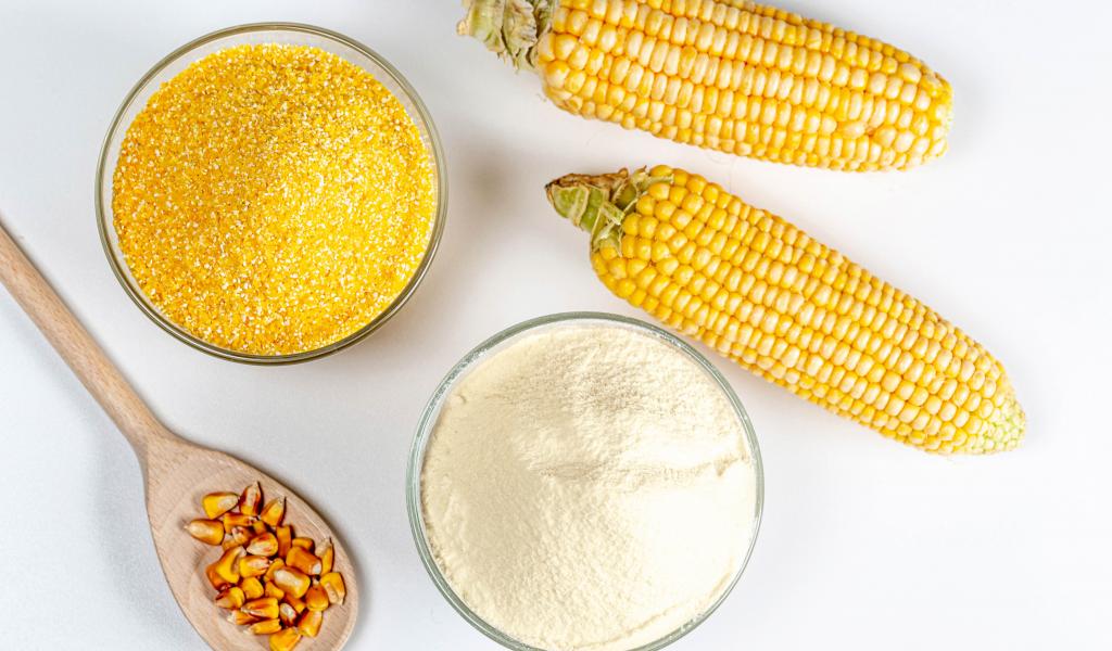 Wallpaper Two ears of corn on a white background with cereal and flour