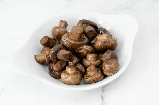 Wallpaper Roasted whole champignon mushrooms on a white plate
