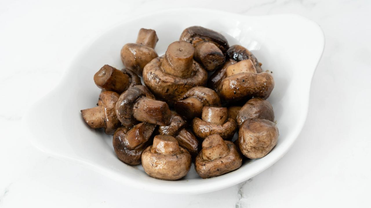 Wallpaper Roasted whole champignon mushrooms on a white plate