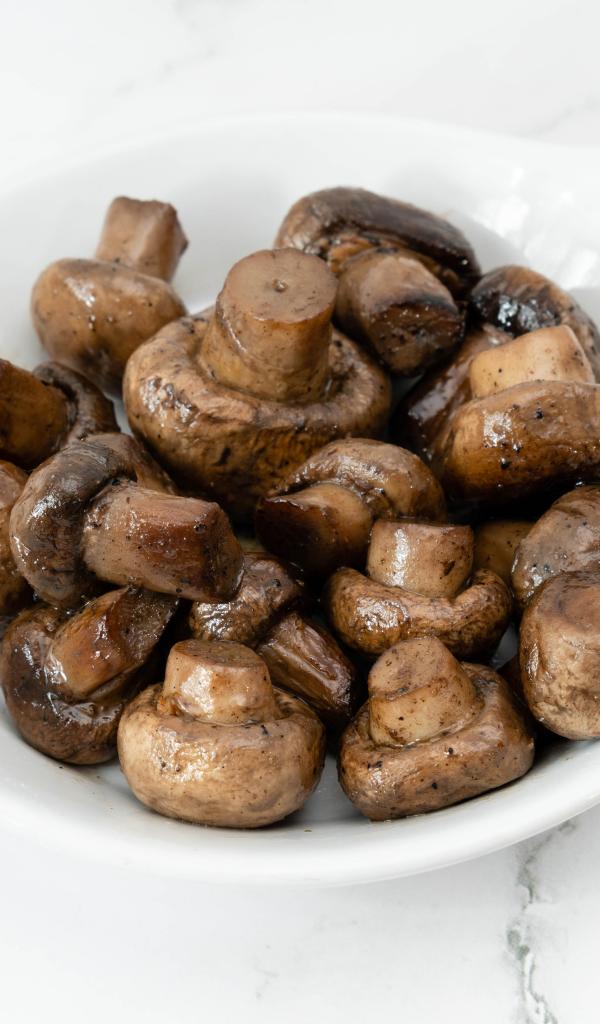 Wallpaper Roasted whole champignon mushrooms on a white plate