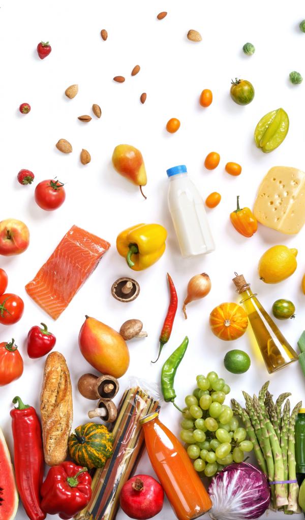 Wallpaper Many different products on a white background.