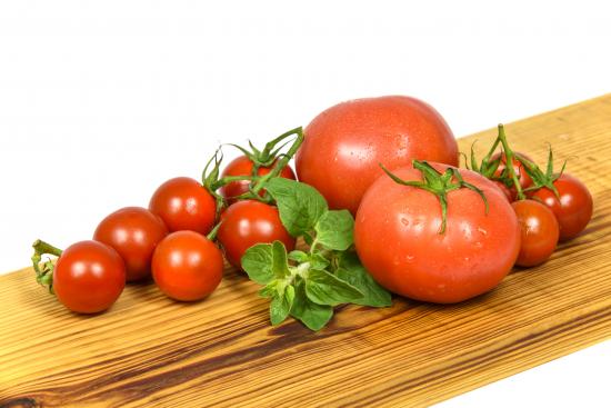 Wallpaper Small and large tomatoes on a wooden board