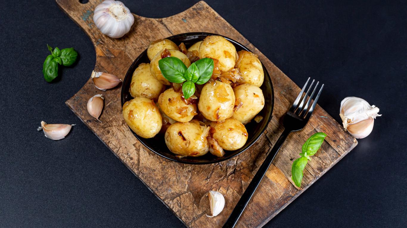 Wallpaper Boiled young potatoes with fried onions