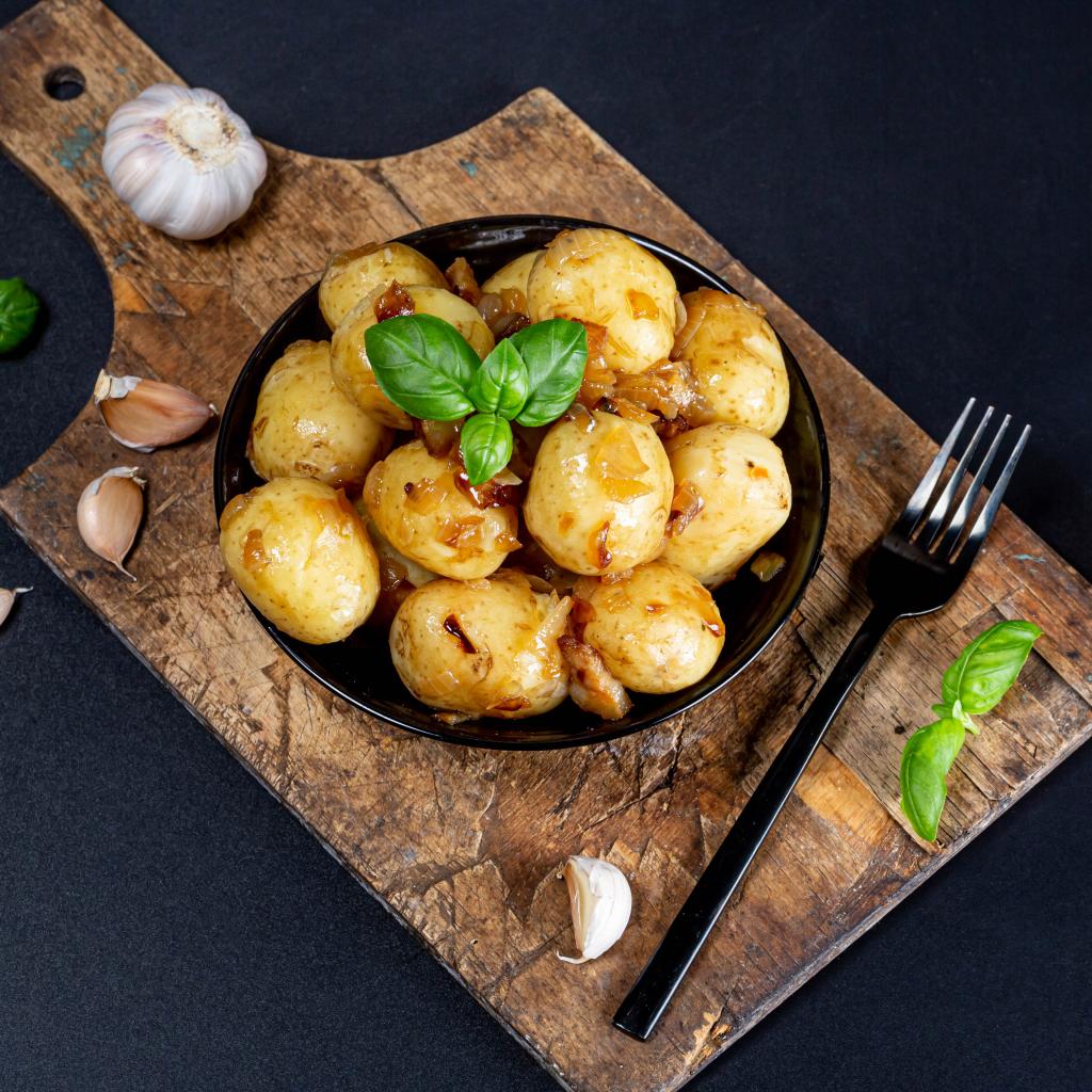 Wallpaper Boiled young potatoes with fried onions