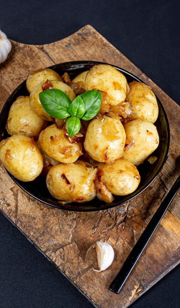Wallpaper Boiled young potatoes with fried onions