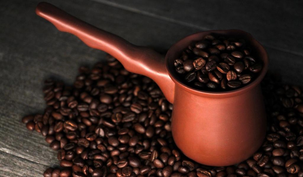 Wallpaper Turk with coffee on a table with grains and green leaves