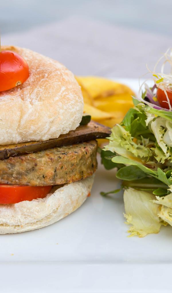 Wallpaper Big hamburger with salad on the table