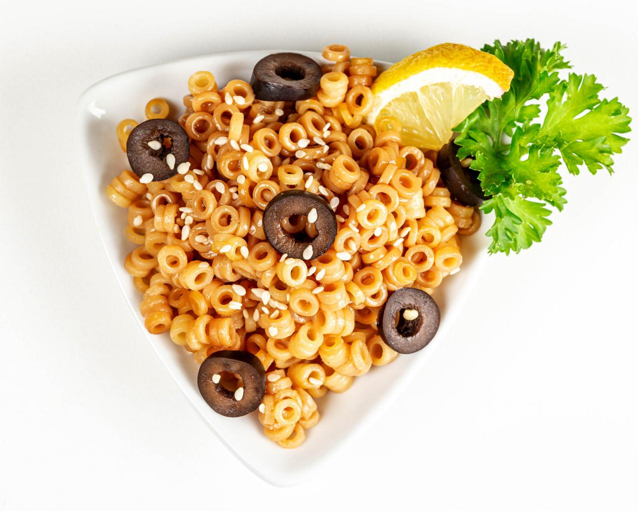 Wallpaper Pasta on a plate with olives and lemon