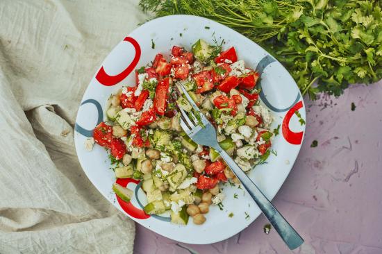 Wallpaper Vegetarian salad in a plate with a fork