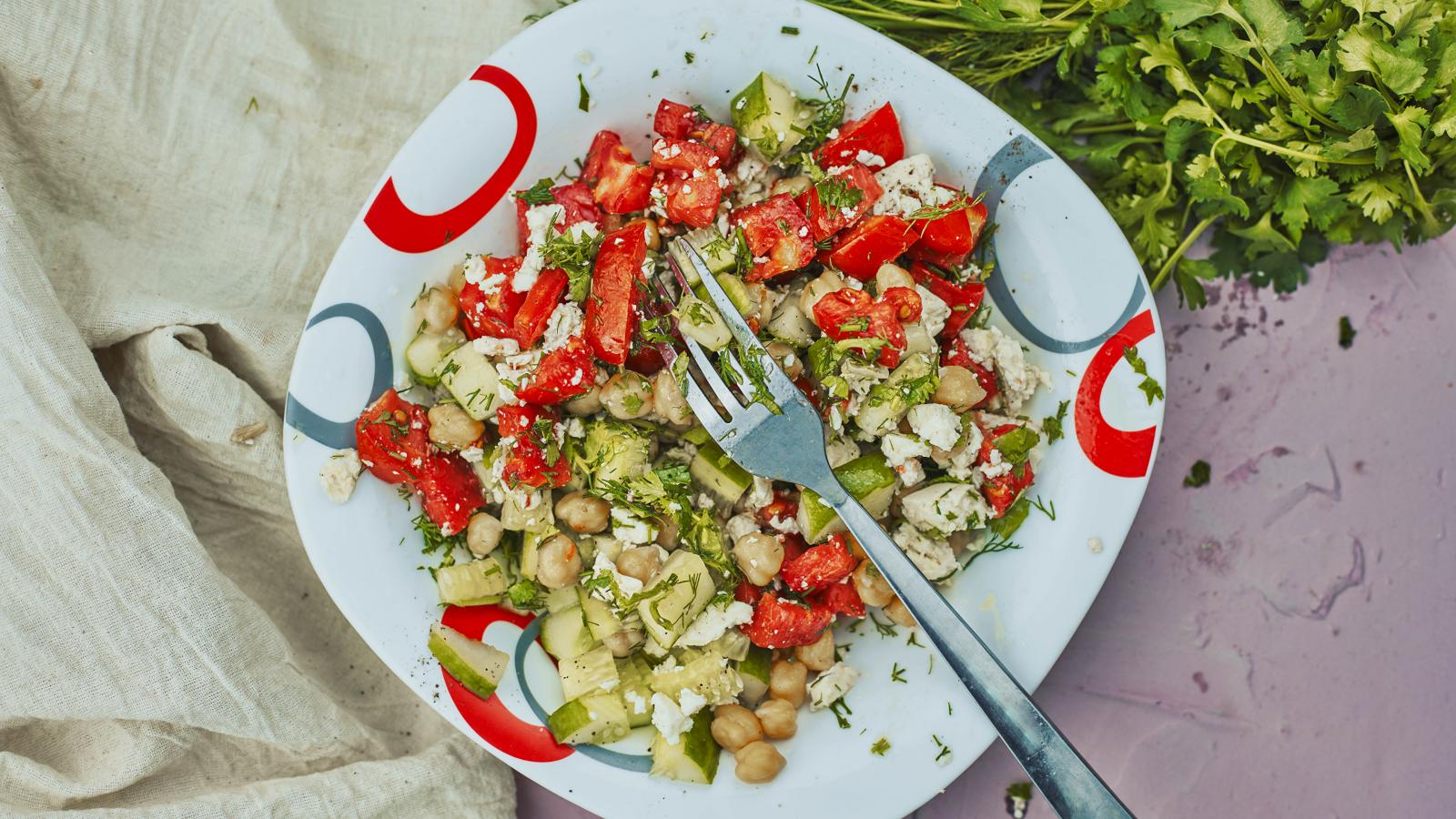 Wallpaper Vegetarian salad in a plate with a fork