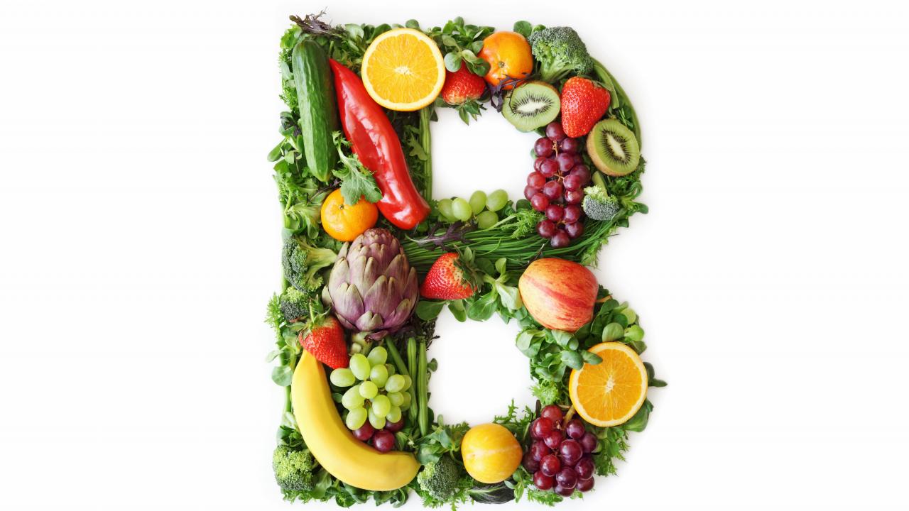 Wallpaper Letter B from vegetables and fruits on a white background