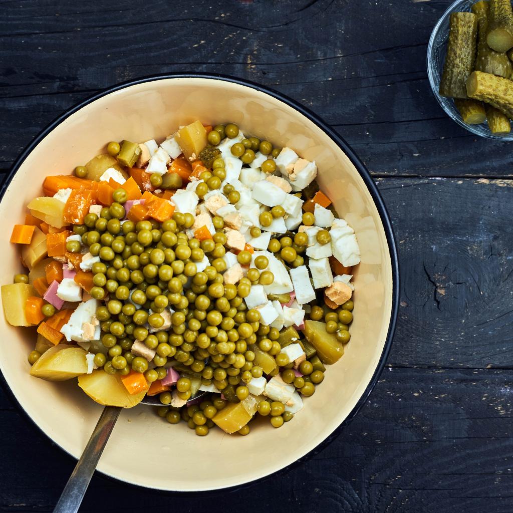 Wallpaper Olivier salad in a bowl on the table