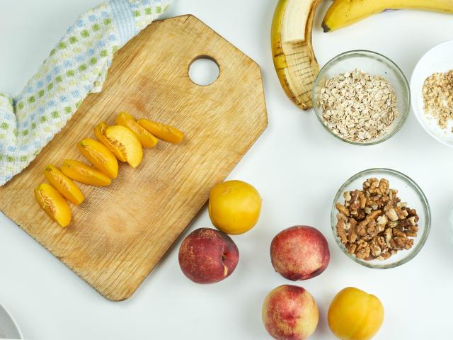 Wallpaper Oatmeal, nectarine, banana and nuts for breakfast
