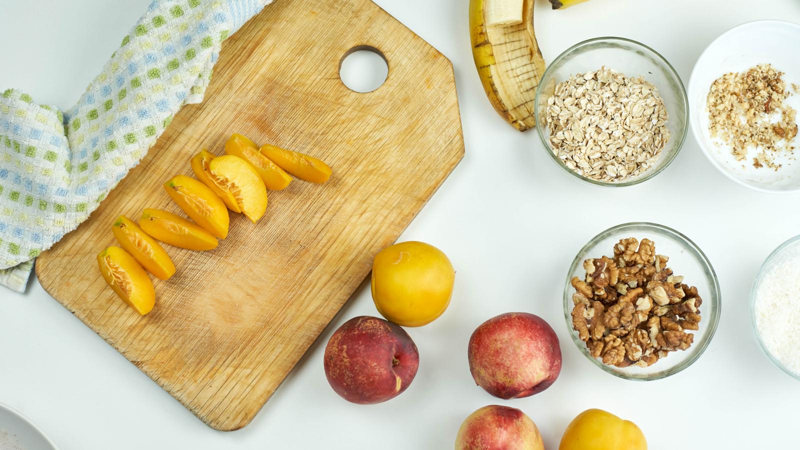 Wallpaper Oatmeal, nectarine, banana and nuts for breakfast