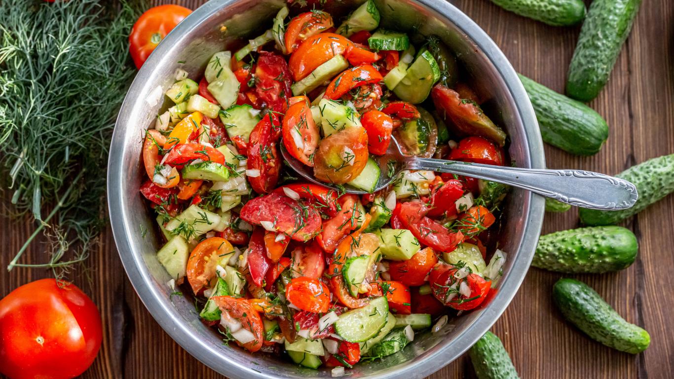 Wallpaper Spring salad with tomatoes and cucumbers