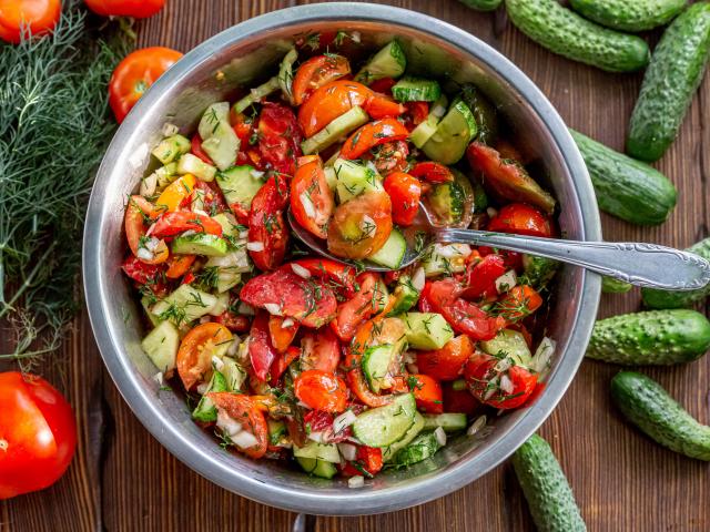 Wallpaper Spring salad with tomatoes and cucumbers