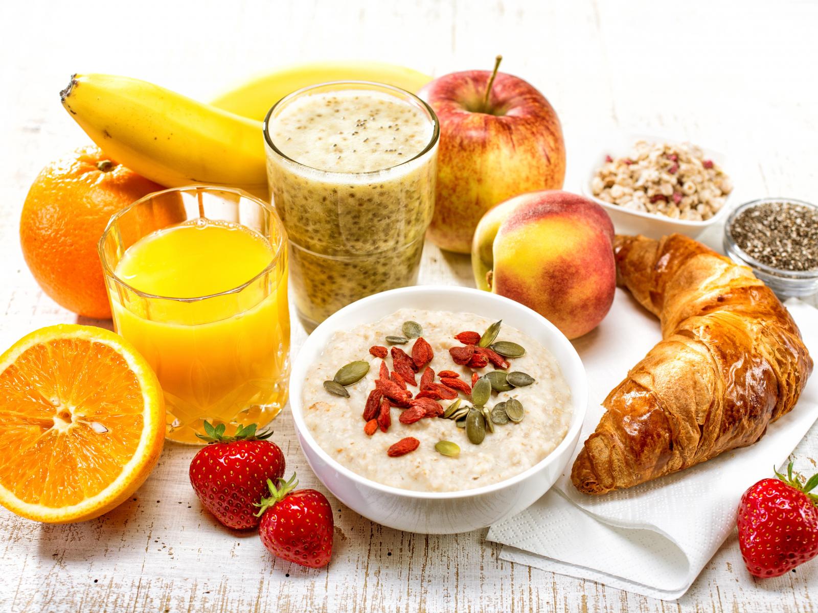 Wallpaper Delicious breakfast with fruits on the table