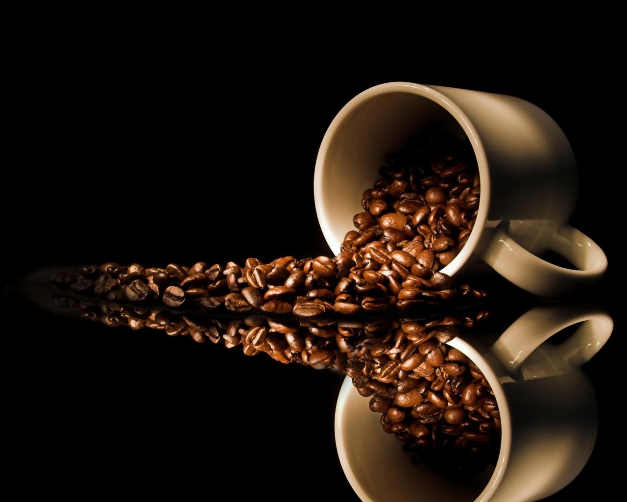 » Wallpaper Coffee beans are scattered from the white mug on the table