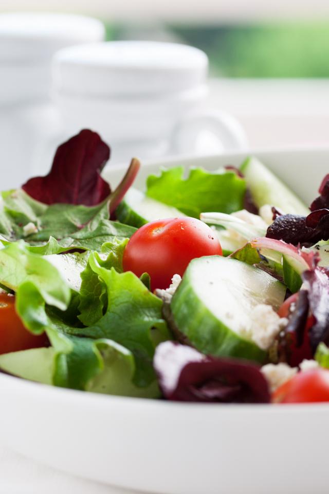 Wallpaper Appetizing salad with fresh cucumbers, tomatoes and cheese