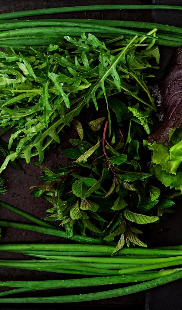 Wallpaper Fresh wet herbs lie on the table