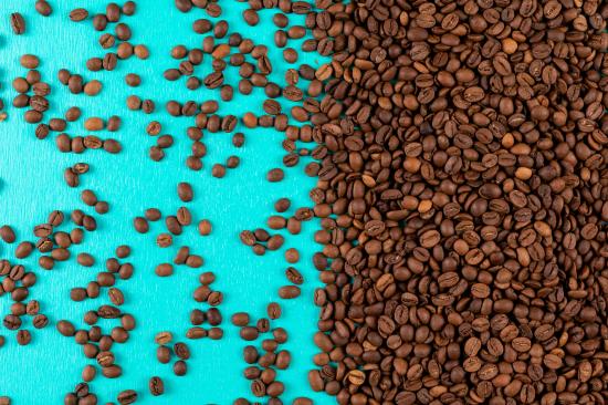 Wallpaper Lots of roasted coffee beans on a blue background