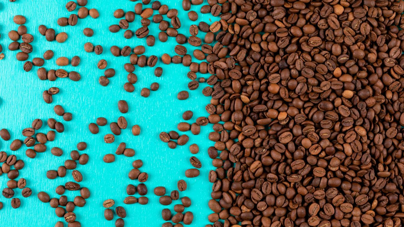 Wallpaper Lots of roasted coffee beans on a blue background