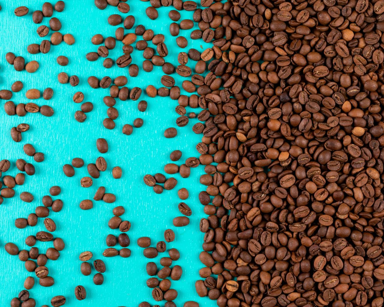 Wallpaper Lots of roasted coffee beans on a blue background