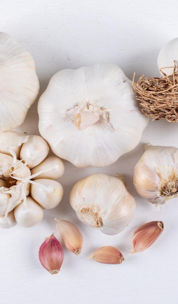 Wallpaper Cheese slice with tomato, lettuce and garlic on white background