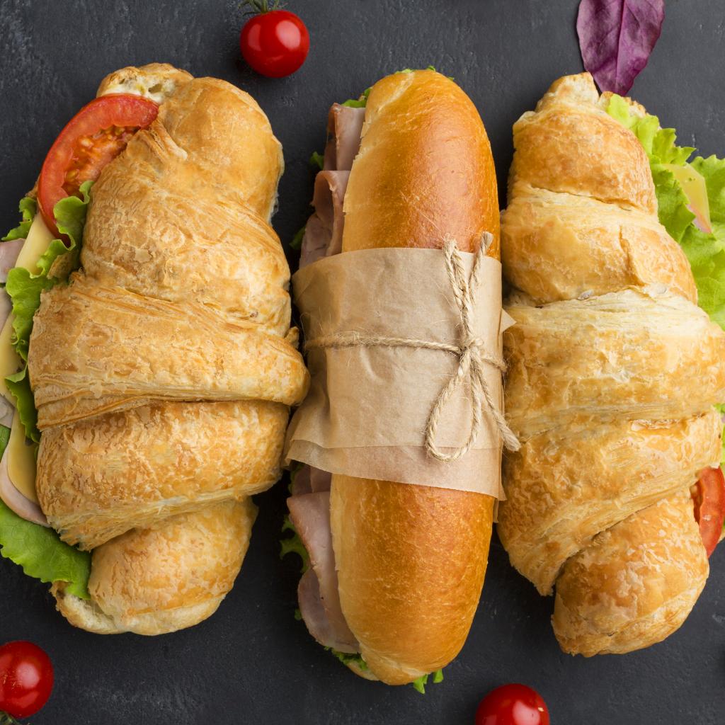 Wallpaper Appetizing sandwiches on a gray table