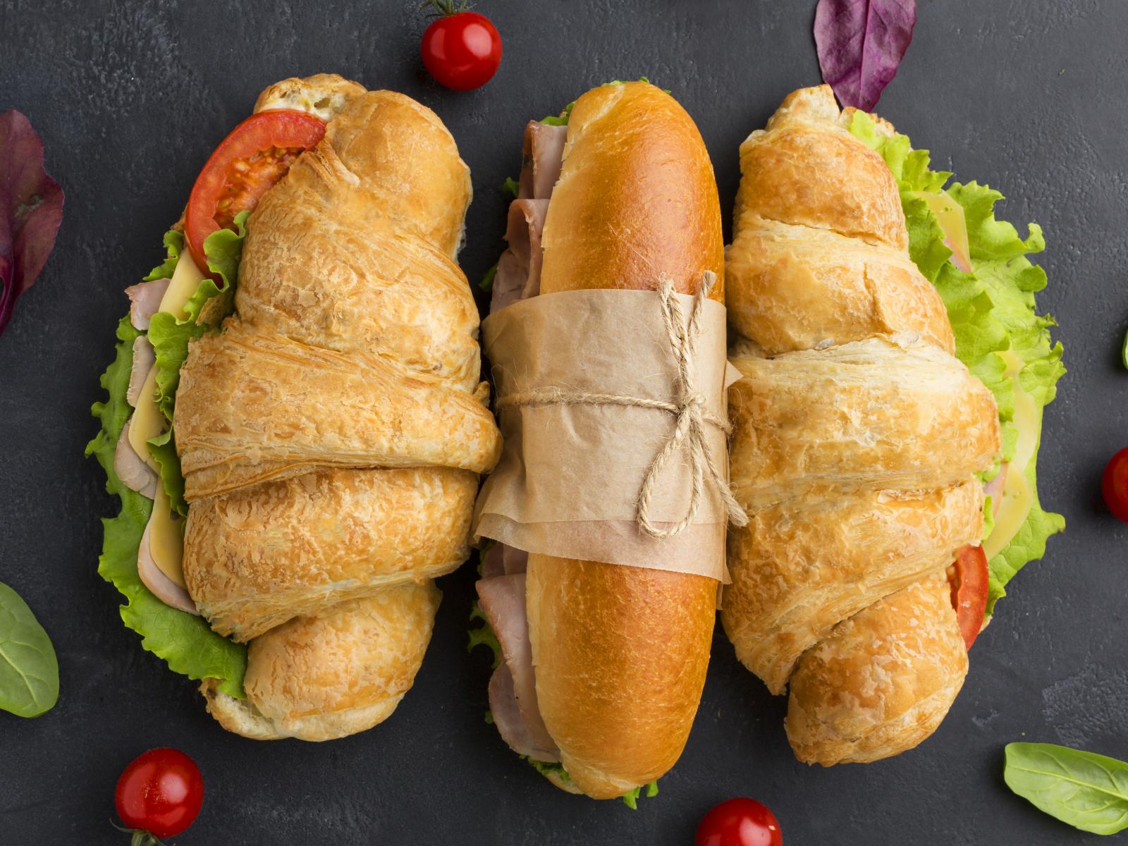 Wallpaper Appetizing sandwiches on a gray table