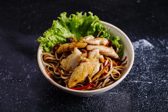 Wallpaper Spaghetti in sauce with chicken and lettuce