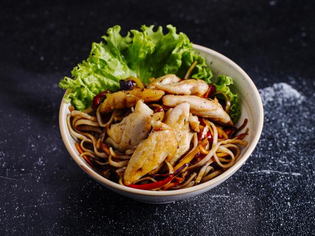 Wallpaper Spaghetti in sauce with chicken and lettuce