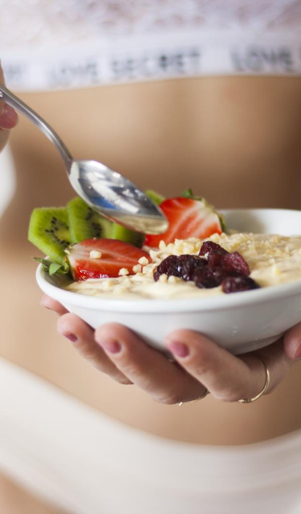 Wallpaper Girl eating oatmeal with berries