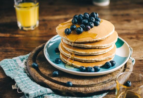 Wallpaper Ruddy pancakes on a plate with honey and blueberries