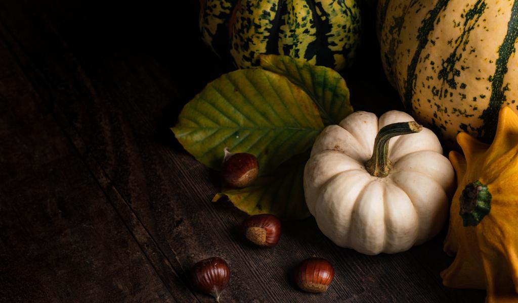 Wallpaper Pumpkin with chestnuts on a wooden table