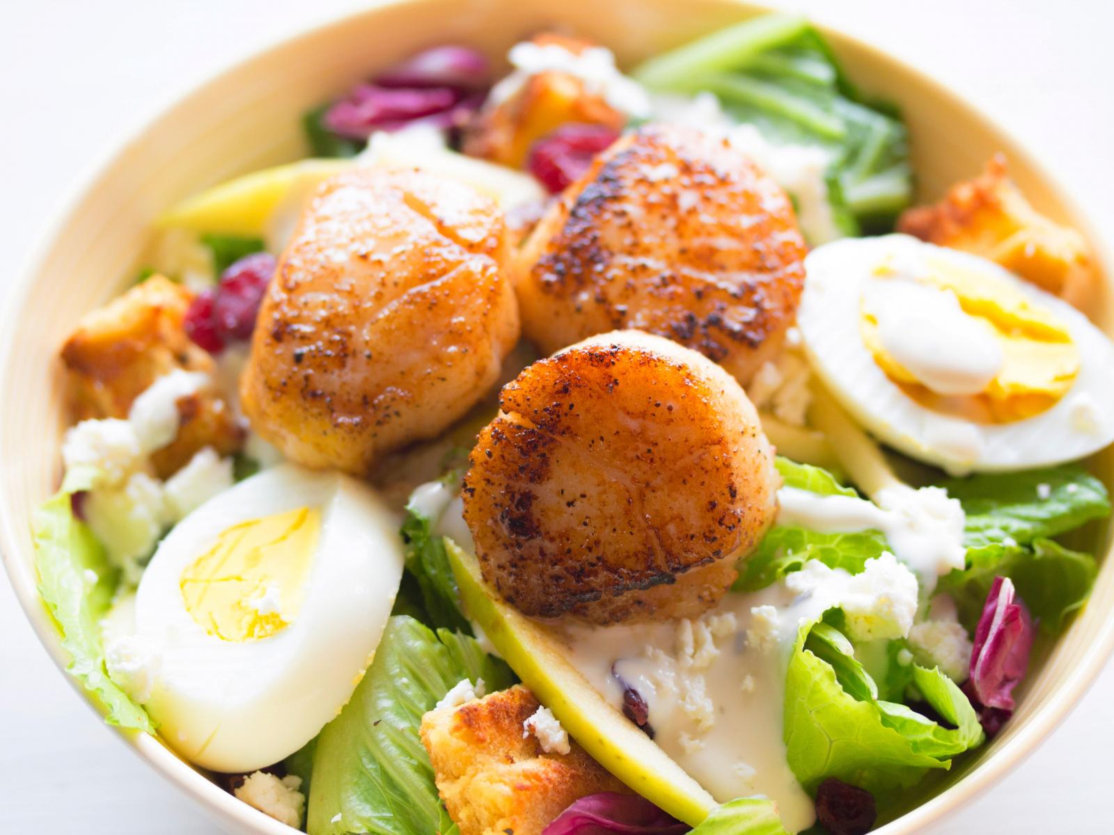 Wallpaper Delicious salad with vegetables, egg and meat