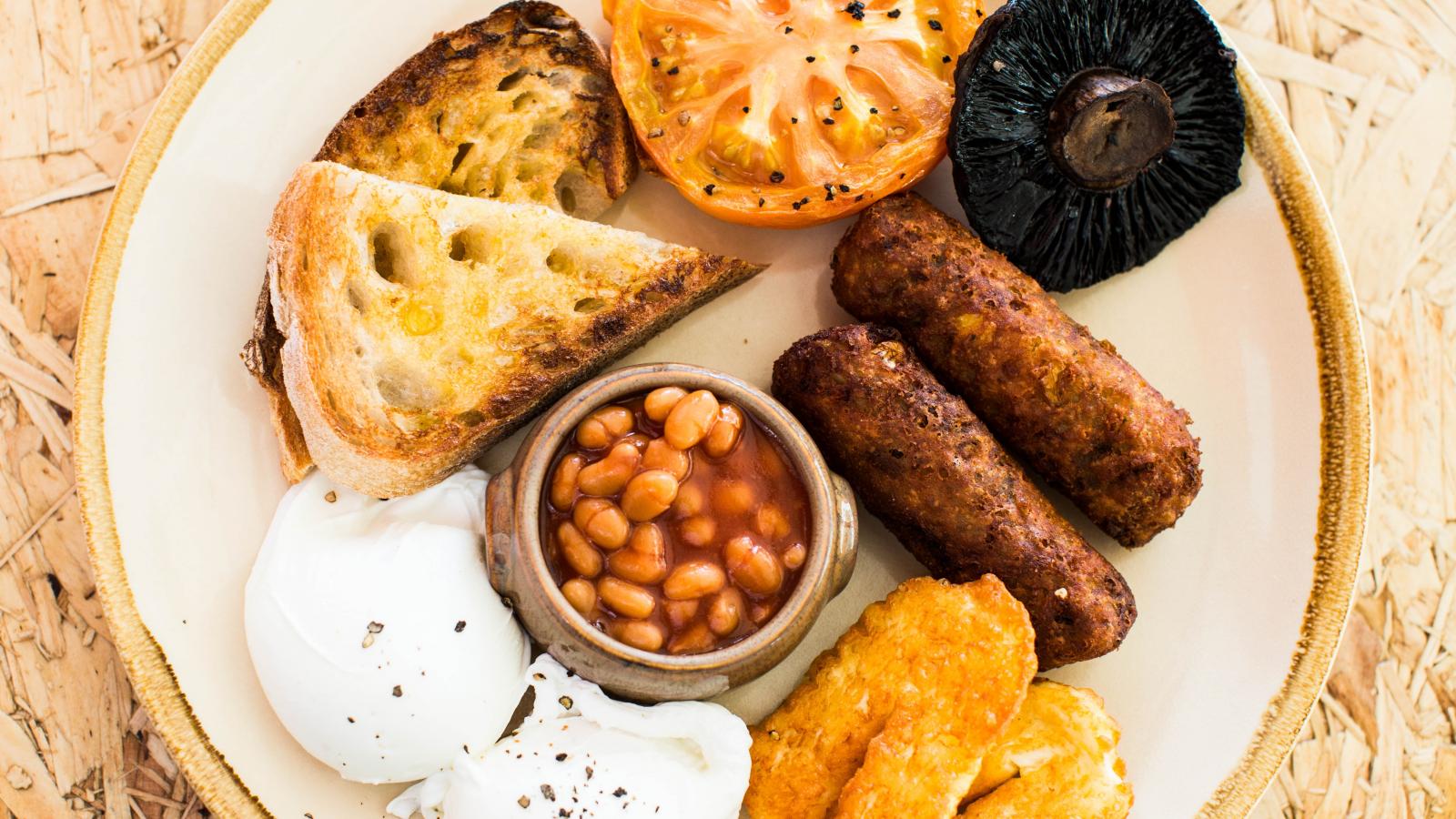 Wallpaper Baked vegetables on a plate with beans and croutons
