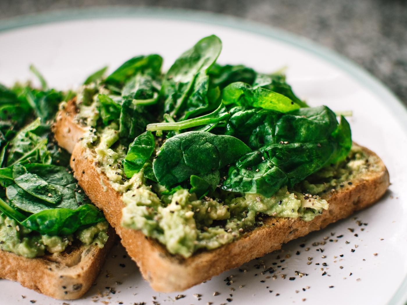 Wallpaper Toast with pesto and basil leaves
