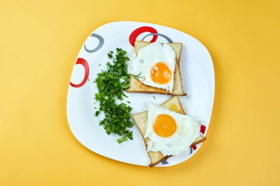 Wallpaper Toast with scrambled eggs on a plate with parsley