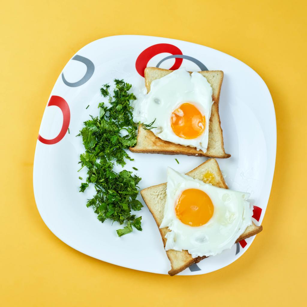 Wallpaper Toast with scrambled eggs on a plate with parsley