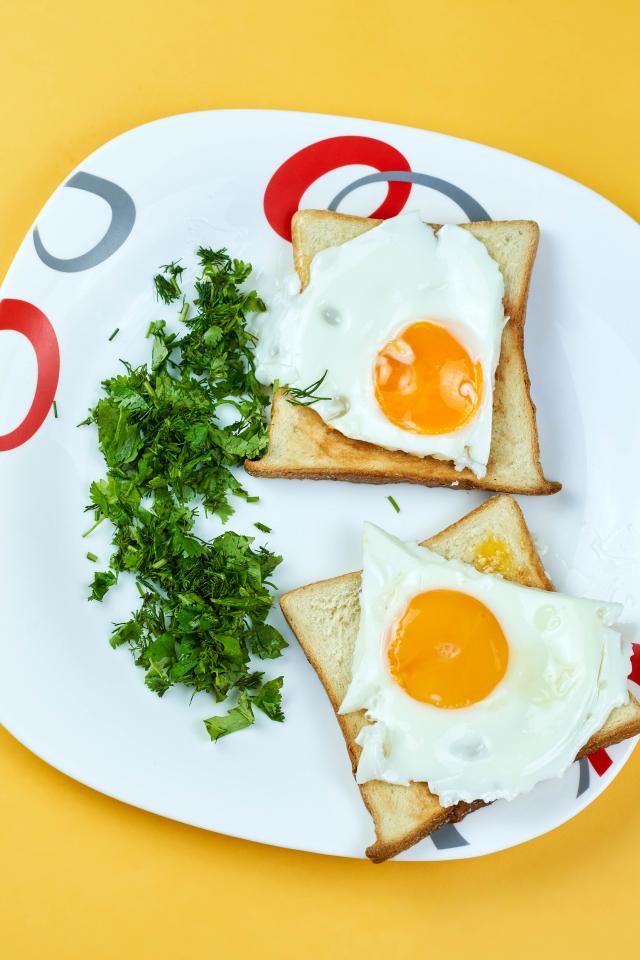 Wallpaper Toast with scrambled eggs on a plate with parsley