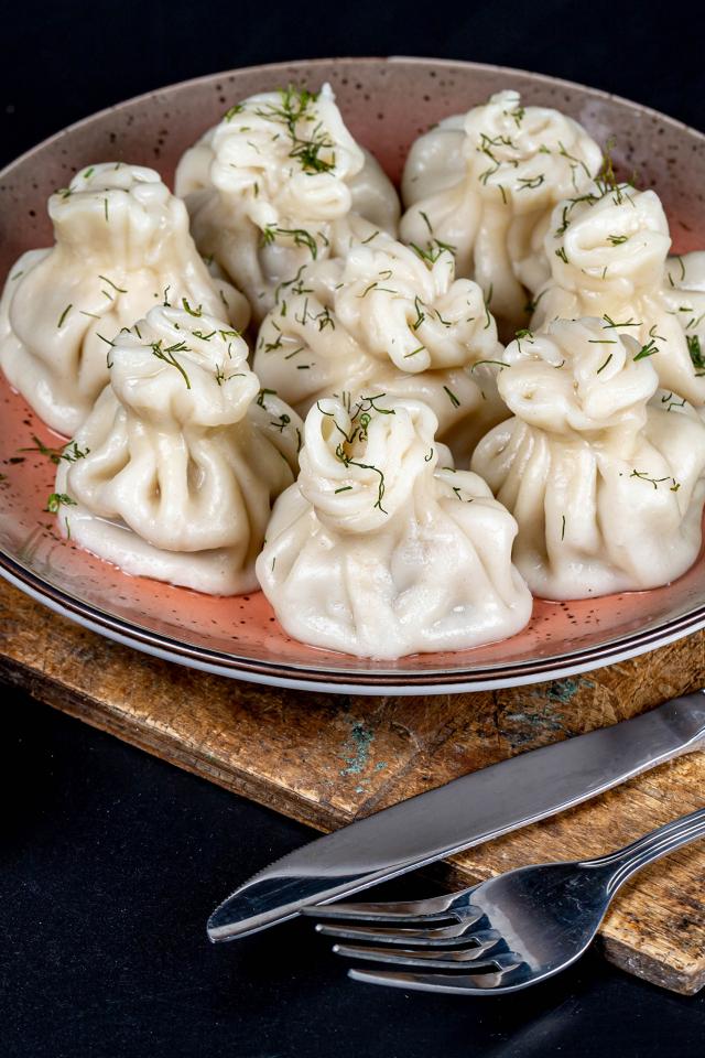 Wallpaper Delicious hot khinkali on the table with sauce
