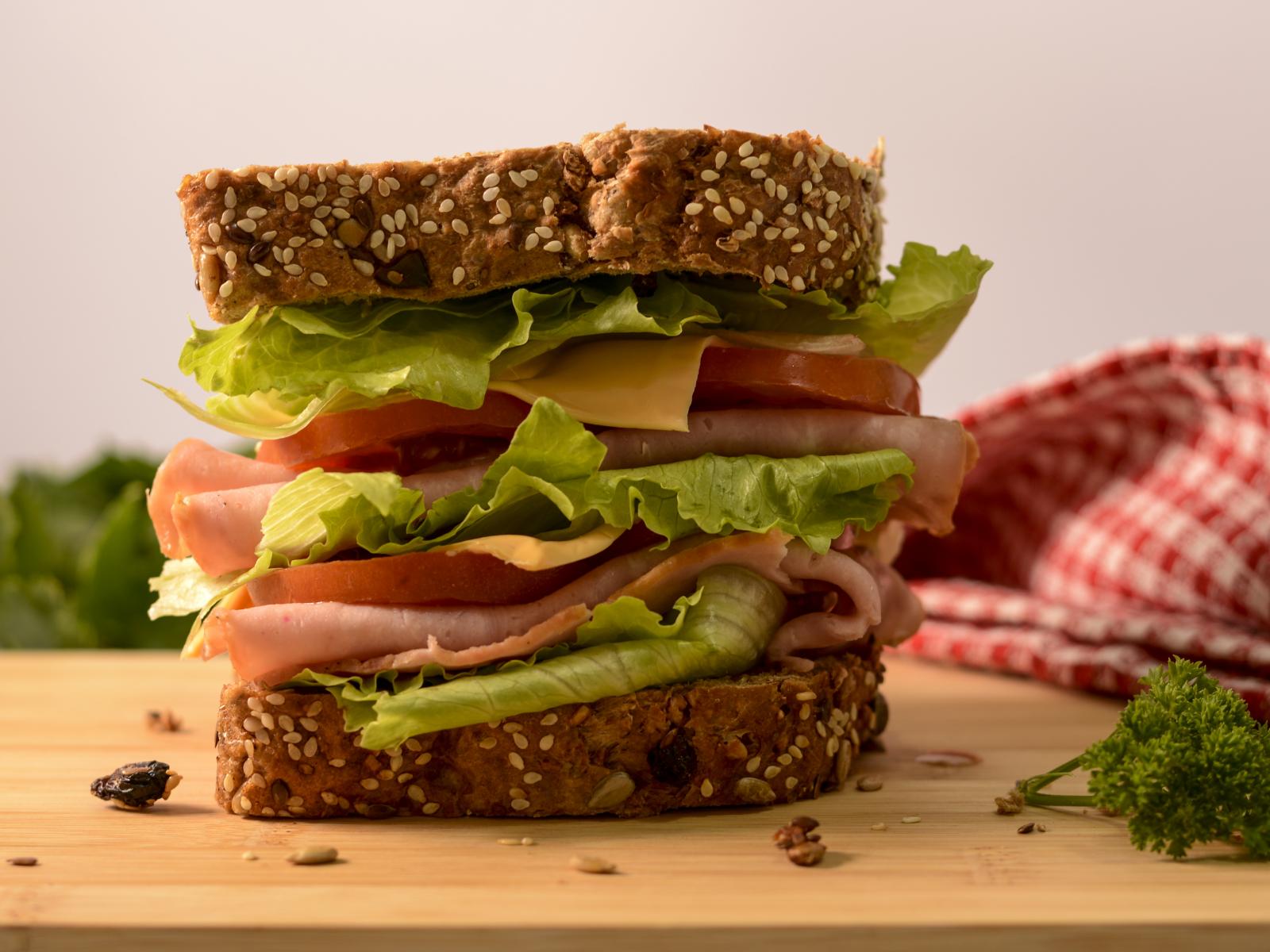Wallpaper Large sandwich with ham, cheese, tomatoes and lettuce
