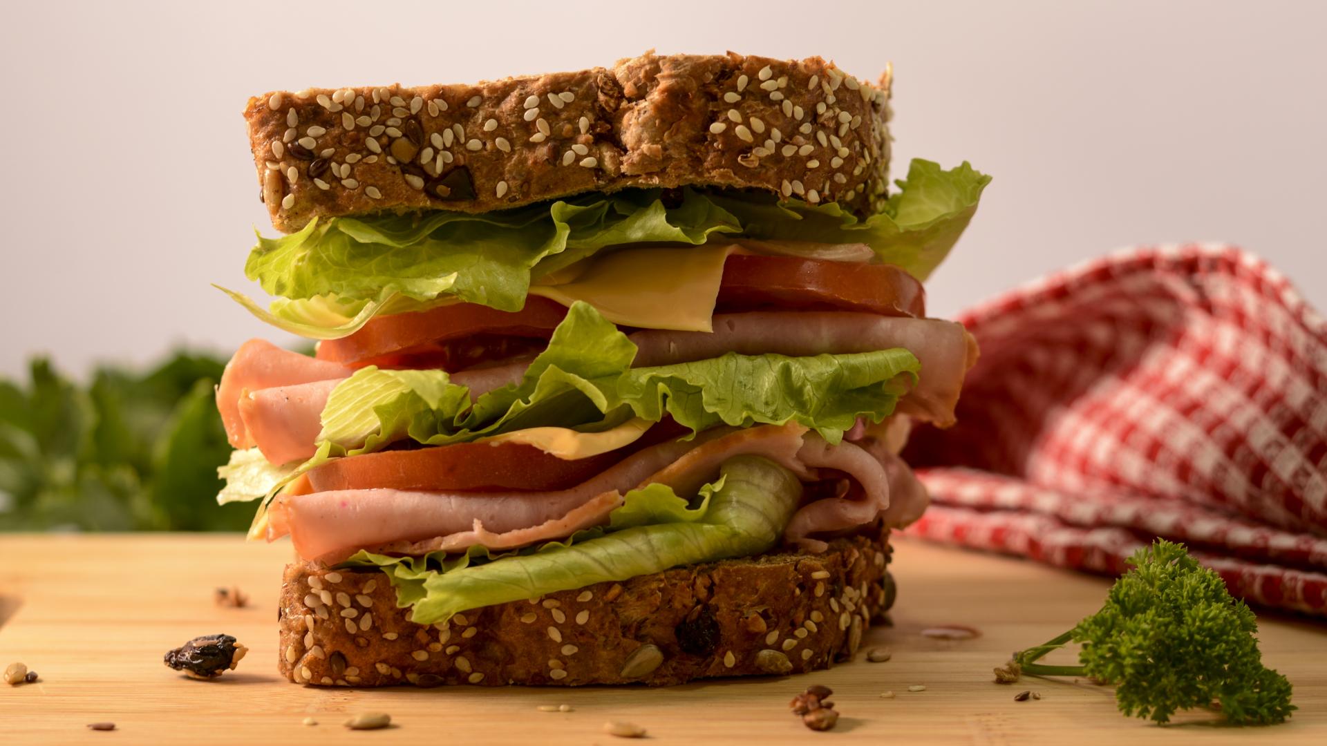 Wallpaper Large sandwich with ham, cheese, tomatoes and lettuce