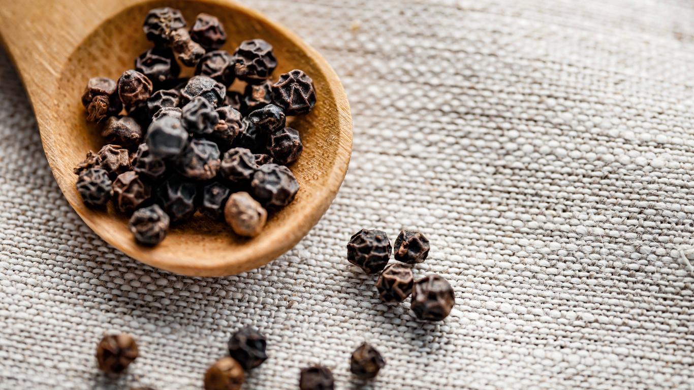 Wallpaper Peppercorns in a mortar on a table with hot pepper