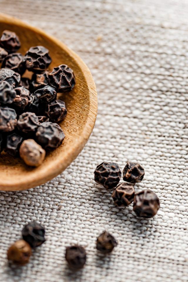 Wallpaper Peppercorns in a mortar on a table with hot pepper