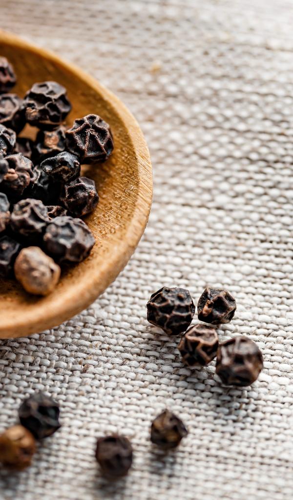 Wallpaper Black peppercorns on a wooden spoon