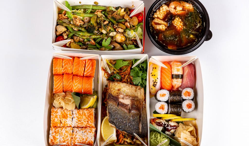 Wallpaper Delicious spicy chinese food on white background