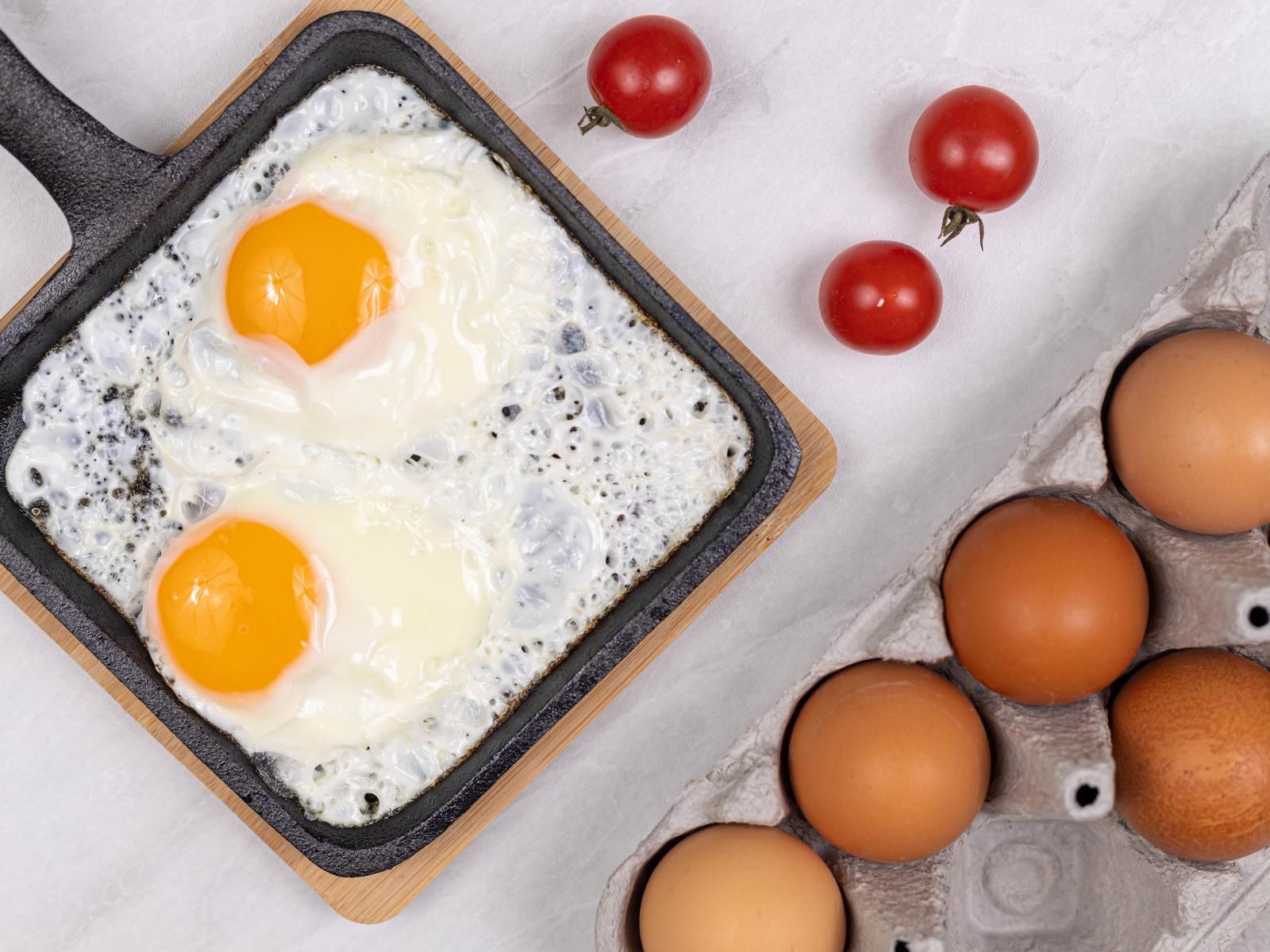 Wallpaper Scrambled eggs with tomatoes and eggs on the table