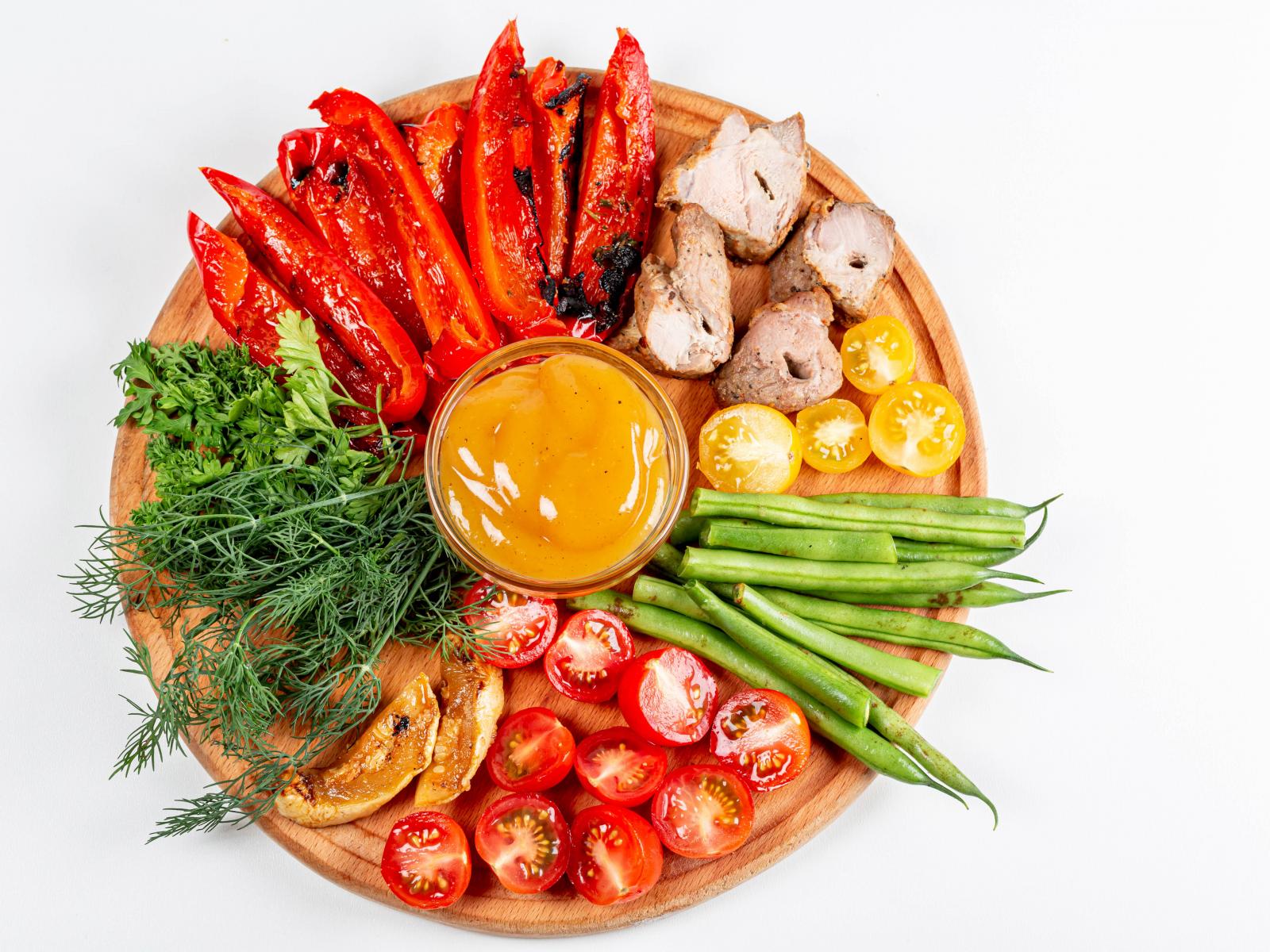 Wallpaper Board with vegetables, herbs and meat